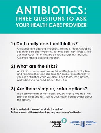A national campaign has been launched by Choose Wisely Canada to help doctors and patients start talking about unnecessary antibiotic use. With flu season in full swing, you may think antibiotics will help cure your cold or the flu which are caused by viruses, but antibiotics are actually used to kill bacteria! Be more informed about whether you really do need antibiotics, click here to learn more!