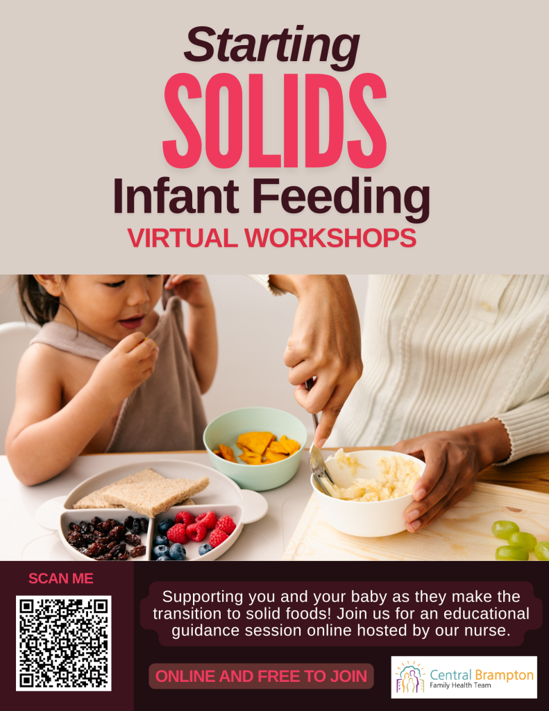 Join our Nurse for this 90-min workshop and learn everything you need to know about introducing solid food to your baby. Best suited for parents whose baby is 2-6 months old. This workshop is held once a month via Zoom. Check out our events calendar for more information!